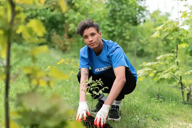 Taking part in hands on tree planting activities, including preparing the soil, planting saplings, and supporting basic care such as watering and mulching.